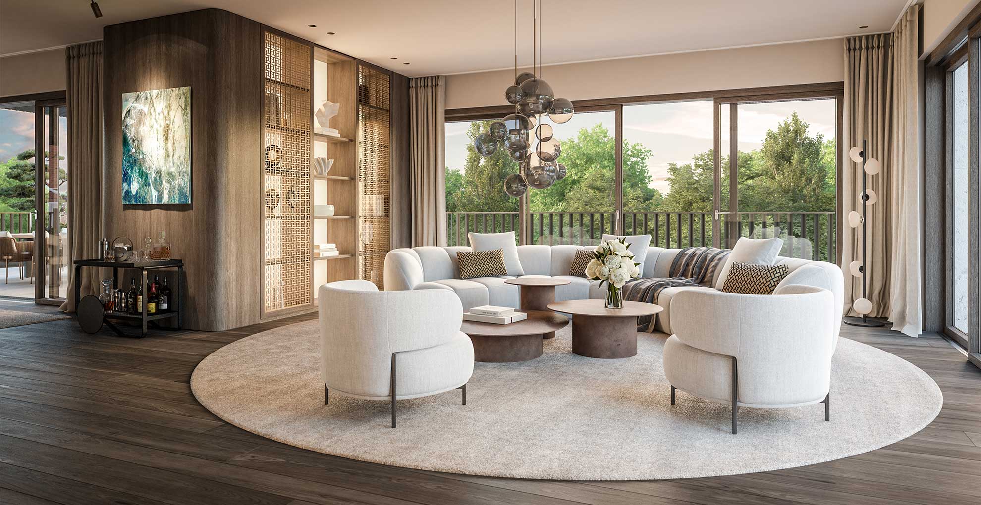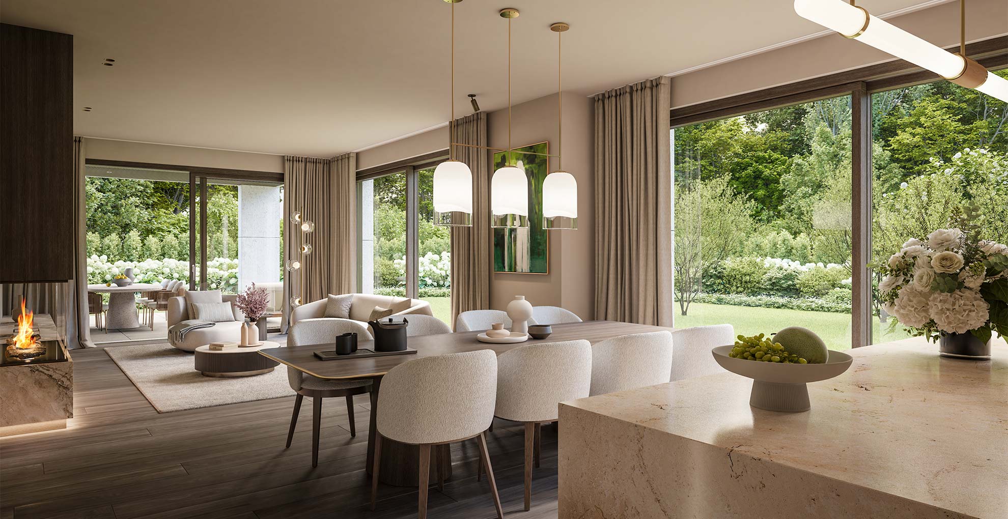 Deckenkühlung in allen Wohnungen, Kamine in einigen Wohnungen